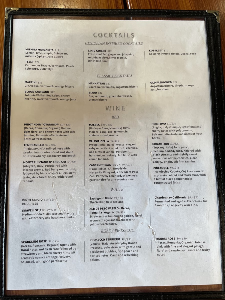 Minced beef tartar seasoned with mitmita, cardamom, ayeb, and Goorsha’s spiced butter, served on a bed of spinach wrapped in injera.