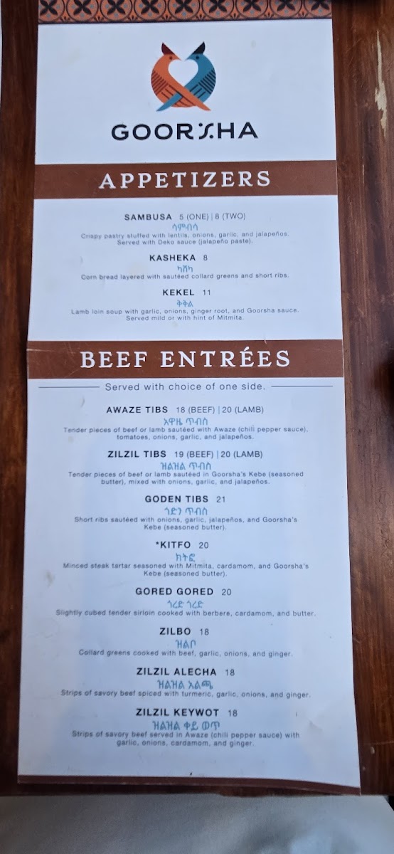 Qubed lamb sautéed in Goorsha's seasoned butter, mixed with onions, garlic and finished with Goorshas awaze